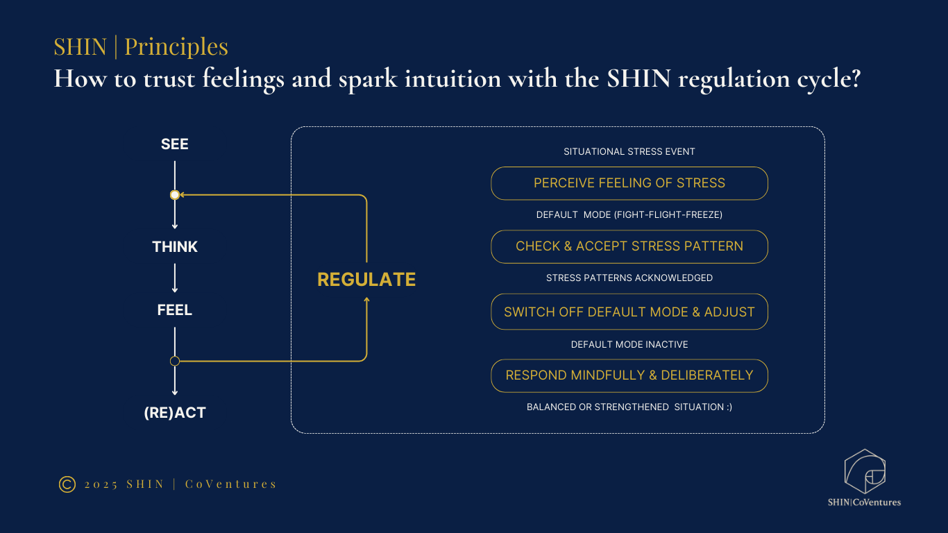 Through targeted emotional regulation techniques, such as Kamaes, Mudras, breathwork, and resets, we support you in managing the default response mode (Fight-Flight-Freeze), enabling you to regain control and perform at your best.